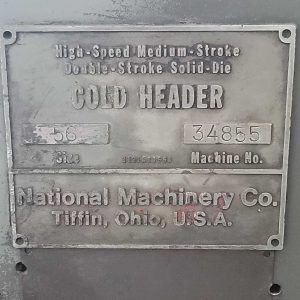 National Machinery 56, Cold Header (High-Speed, Medium-Stroke, Double-Stroke, Solid-Die)